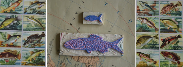 Une fois encré, l'effet est sympa pour agrémenter les courriers ou n'importe quelle petite carte avec des petits mots ... Un air d'océan, de sardine, et nous voilà partis vers le large ...