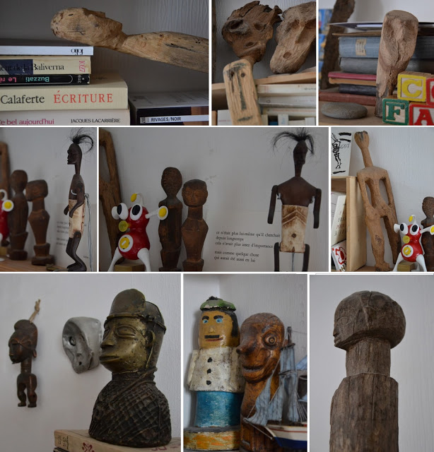 Un univers d'art brut. Des statues Luba, ou d'art Africain d'autres origines côtoient des créations personnelles, un univers qui nous emmène ailleurs ...