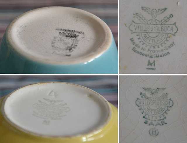 J'adore les couleurs de ces petits pots en faïence de Sarreguemines ou de services Villeroy & Boch des années 50 - 60. J'en ai quelques uns, même si je me refrène parfois à en acquérir d'autres. Cette manie des séries ... mais ensuite, il faut trouver des usages à ces petits pots ...
