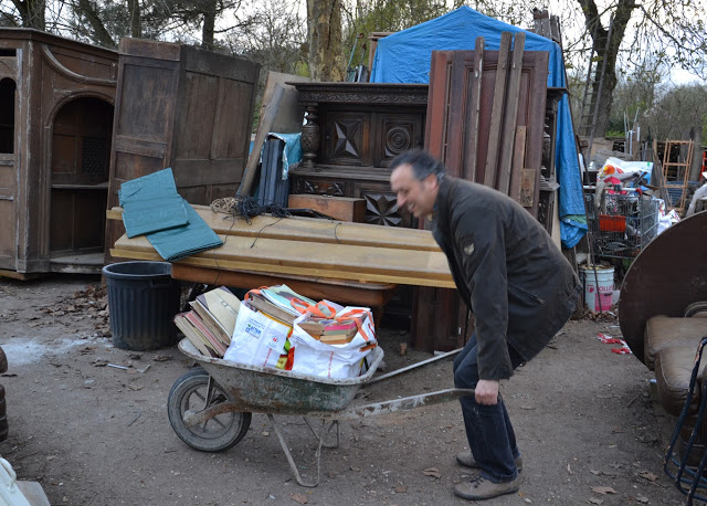 Et voici la pêche du flibustier ... Il lui a fallu une brouette pour amener les quelques kilos de livres et anciens documents jusqu'à la voiture ...