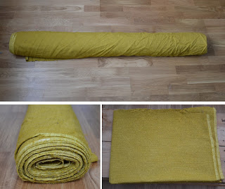 J'avais trouvé il y a quelques mois un gros rouleau de tissu d'ameublement en brocante, et il a été utilisé pour refaire le fauteuil.