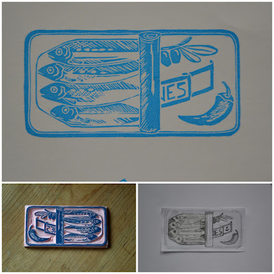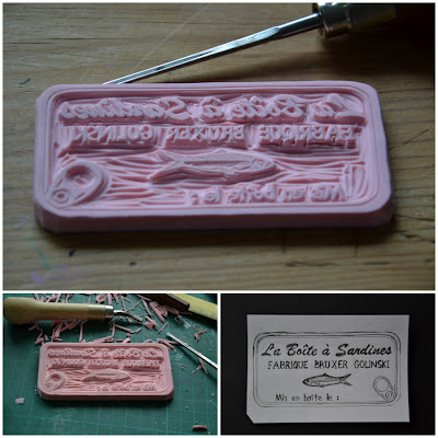 J'ai eu une demande de réalisation de tampons en Juillet qui m'a ravie. En effet, il s'agissait de proposer deux grand tampons à la façon "boîte de sardines" pour annoncer une naissance. J'ai donc fait de A à Z cette réalisation. Du dessin à la gravure ... Bon il n'y a que le bébé évidemment que je n'ai pas fait (ha ha), avec mes deux bourdons et les deux du Flibustier, je crois que la maison est assez remplie :).