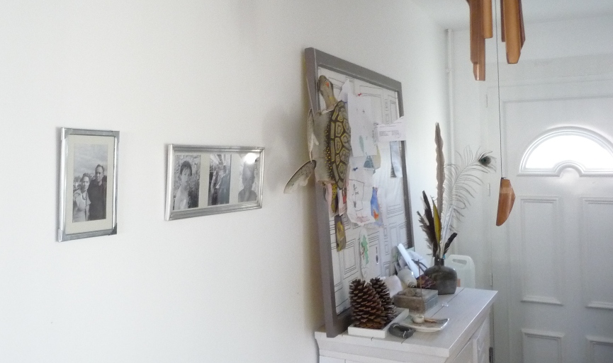 Quelques jolis cadres en fer blanc et métal, une fois bien nettoyés, avec des photos en noir et blanc, trouvent vite leur place dans le couloir