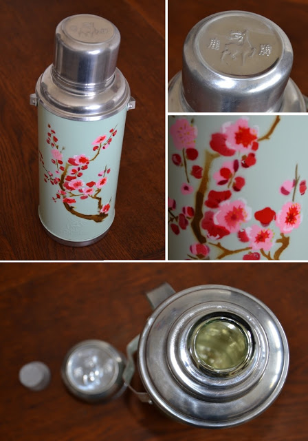 Un coup de cœur, pour les thermos chinoises DEER BRAND, que l'on trouve de plus en plus en vente sur Internet. Même si le contenant est en métal, l'intérieur est en verre donc assez fragile. J'aime les motifs typiques de la vaisselle chinoise émaillée, avec un soupçon de désuet pour la couleur un peu fanée et le métal en fer blanc.