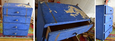 Un petit meuble bleu qui me donne un peu de fil à retordre, la peinture semble comme impossible à décaper même après un temps de pose important de décapant :(