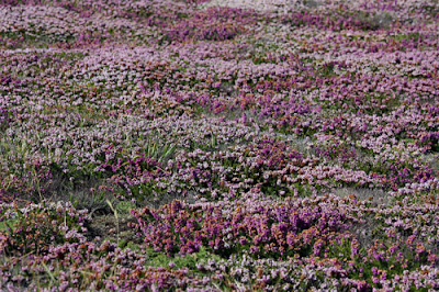 L'idée de départ vient des landes à Callunes ou bruyères des bords océaniques, qui mélangent des tons de vert de mauve comme la photo suivante. Ceci est une base d'inspiration, je n'envisage pas autant de mauve, mais plus de vert et de courbes.
