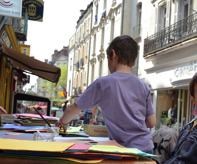 Le week end précédent, le flibustier a fait, à la demande d'une librairie de la ville, un atelier créatif pour les enfants. La ville fêtait le printemps, pour l'occasion des animations avec des artistes étaient proposées dans les rues, des fanfares jouaient dans la ville.
