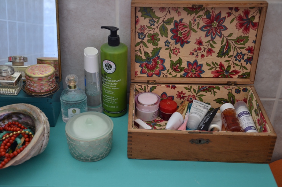 C’est un joli coffret de cette époque, que j’ai trouvé dernièrement, en état plutôt correct. Un coffret de toilette de pension, comme c’est indiqué sur le couvercle.