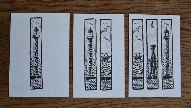 J'aime tout ce qui a trait à la mer, je pense que nous sommes nombreux à aimer cela, les navires, les cargos, les paquebots, les ports, les phares. Tout que qui prête à l'imaginaire, au voyage à l'ailleurs... C'est pour cela que j'ai eu envie de faire des tampons sur ce thème : Voici de jolis phares pour décorer une enveloppe faite maison, une autre à venir pour envoyer pour de vrai :).