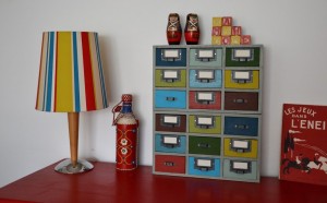 Petit changement de design pour deux petits meubles à petits tiroirs, achetés avec une belle remise pour cause de défaut de poignées. La qualité est cheap cheap, mais, après mise en couleur et pour y ranger proprement les petits tampons gravés, ce sera parfait.