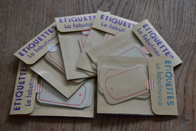 Je vous parlais de proposer dans la boutique un peu plus de petites choses tamponnées, voici des petites étiquettes sur des papiers épais couleur kraft ou gris-beige. Par lot de 5 ou plus.