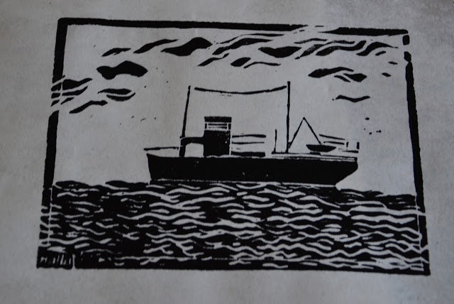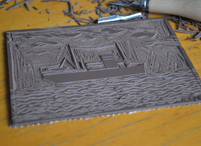 Après mes petits tampons, forcément l'envie de tester la linogravure me titillait. J'ai donc tenté une première Lino, petit format.