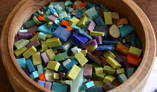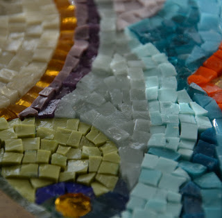 Juste pour ceux qui se demanderaient pourquoi la mosaïque n'est pas plane, c'estla difficulté le propre des mosaïques avec les pâtes de verre de Venise, contrairement aux émaux, qui ont déjà une épaisseur régulière.