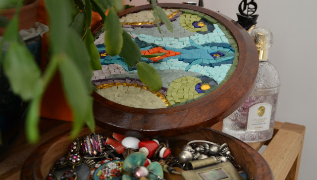 J'ai mis quelques uns de mes bijoux à l'intérieur. J'en ai, on va dire, plutôt pas mal et un peu partout. Il me faudrait là aussi faire du tri, mais c'est super difficile.
