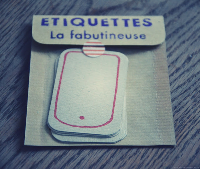 Petites étiquettes tamponnées, en kraft gommé à coller partout avec un petit coup d'éponge mouillée, ou en carton à accrocher avec une petite ficelle, ou même à coller d'un coup de scotch double face. Tout est possible. Je vous disais que j'avais envie de faire des petites choses, c'est chose faite et en ligne sur
