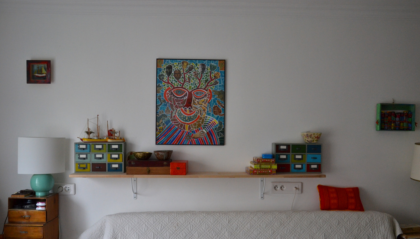 Voilà, je l'ai mis dans mon salon, pas évident de trouver un endroit dans ma minuscule maison, j'ai dû changer 2-3 choses, il apporte une touche de gaîté dans la pièce !