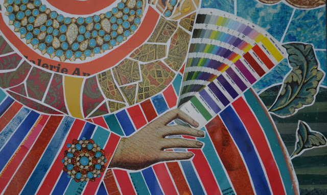 Une déesse de la créativité faisant un clin d'oeil à La Fabutineuse? Collage mosaïque, collage vitrail, mystérieux et facétieux, des couleurs chatoyantes, pêchu et plein de douceur. L'oeuvre d'un orfèvre amoureux. CT.
