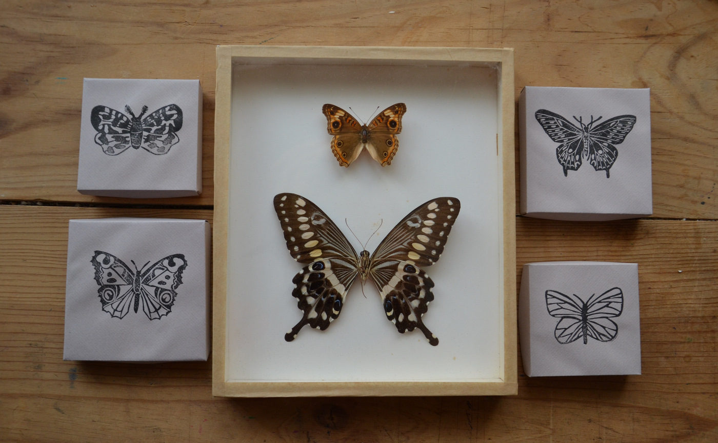J'ai souhaité gardé trace de mes premiers papillons, dans un cadre que j'avais chiné.