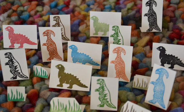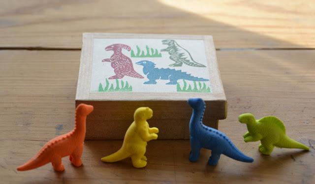 Dans la série "petites boîtes" voici les dinosaures. Après les trios de matriochkas, la boîte anniversaire je trouvais l'idée de petites boîtes assez sympathique. J'ai eu envie de faire des boîtes à thème avec plusieurs tampons déclinés. Voici l'ère préhistorique, celle des grosses bêtes j'ai nommé les dinosaures !!
