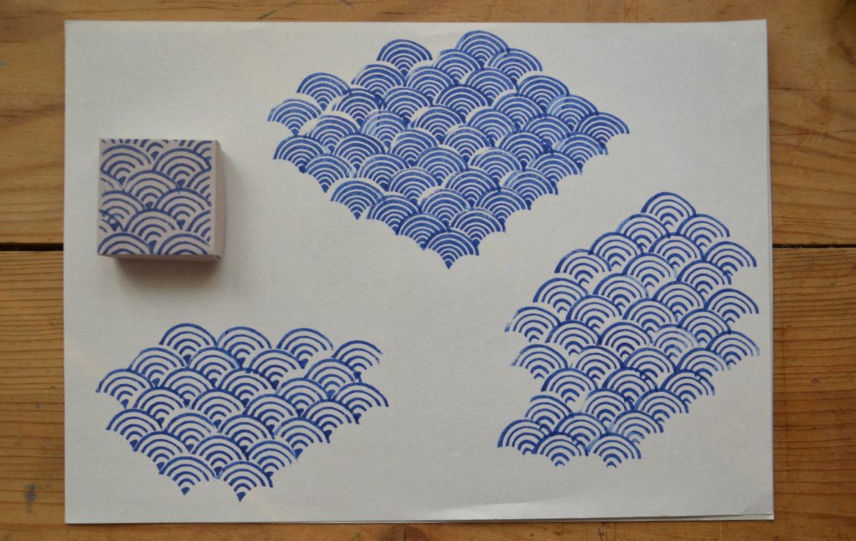 J'aime les motifs simples répétés. Les vagues japonaises ou encore écailles, parce qu'on les trouve dans des estampes japonaises à divers motifs sont de ceux-ci. Un trait plus fin ou plus épais et le motif change de suite.