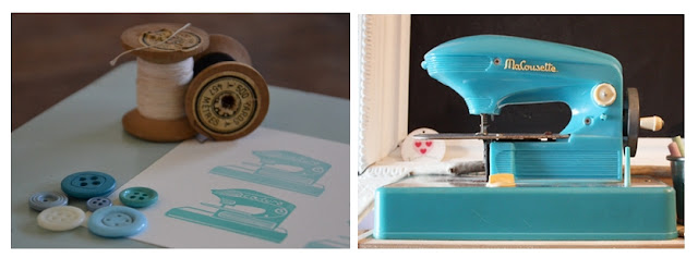 Cette semaine je suis tombée en admiration devant la petite MAC "ma cousette" (machine à coudre pour les non initiés) vue chez Hélène de "pour mes jolis mômes". La couleur turquoise le style vintage, l'aspect, bref tout ce que j'aime.