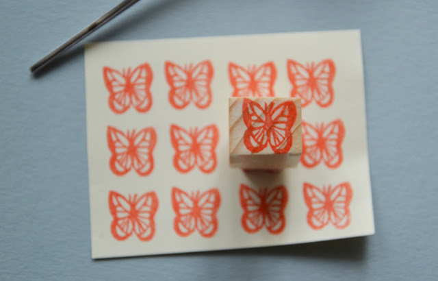 Un tampon papillon commandé pour remplir les cartes fidélité d'une petite boutique. Et puis l'envie de faire voleter ce papillon sur des serviettes en papier, afin d'agrémenter une table un peu trop sage. Il m'arrive d'utiliser des assiettes en carton (je sais ce n'est pas très écologique), mais quand nous sommes six, qu'on dîne à l'arrache et qu'on est en fin de semaine parfois on se la coule douce.