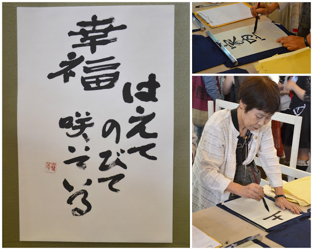 La calligraphie japonaise est véritablement un art. Des artistes calligraphes proposaient de la performance de calligraphie. On soutenait les sinistrés du séisme japonais avec un petit don versé dans un tronc et on pouvait s'essayer à faire une exercice de calligraphie.