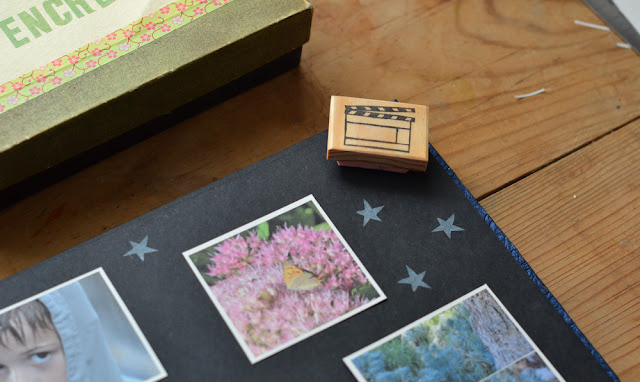 J'ai fait une petite page en utilisant le tampon clap de cinéma pour noter la date et le lieu sur la page. Bon yapuka finir les autres pages ...