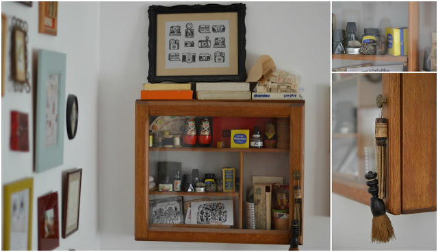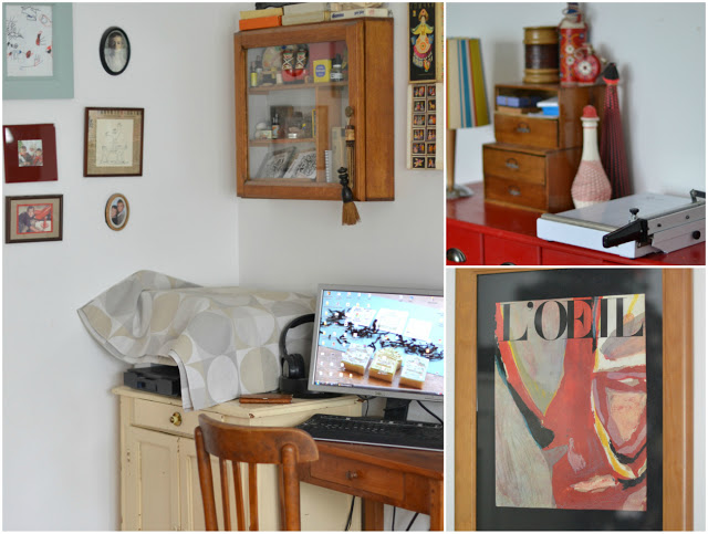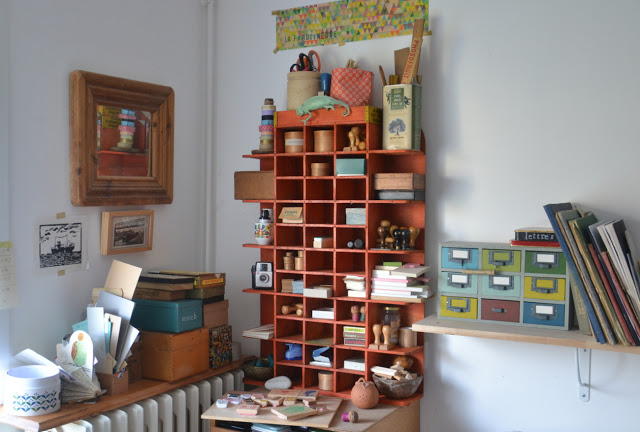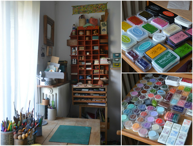 RépondreSupprimerIl est absolument magnifique ce meuble et j'aime beaucoup aussi celui dans lequel tu ranges tes encres. Et la toute petite commode blanche qu'on devine à coté de ton bureau.