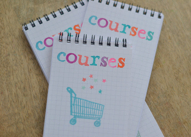 Un petit caddie gravé en tampon, et voilà de jolis carnets de course très simples que je vais offrir à ma maman en lot. Pour en avoir d'avance.