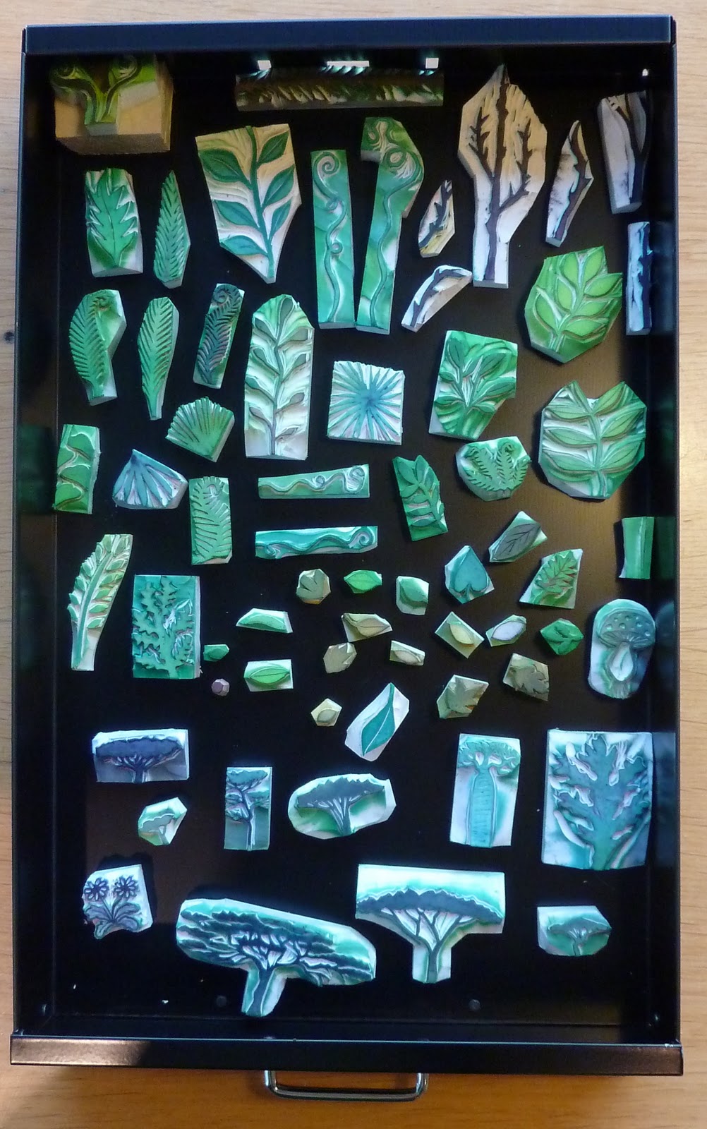 Au Japon, il existe des dizaines de gommes à graver différentes, des blanches mais aussi de couleurs, de différents degrés de dureté, le paradis en quelques sortes. (Il y a même une association qui regroupe les professionnels de gommes gravées à la main !!) mais pas d'envoi international pour tout cela. Je trouve ma gomme dans une librairie japonaise JUNKU à Paris.
