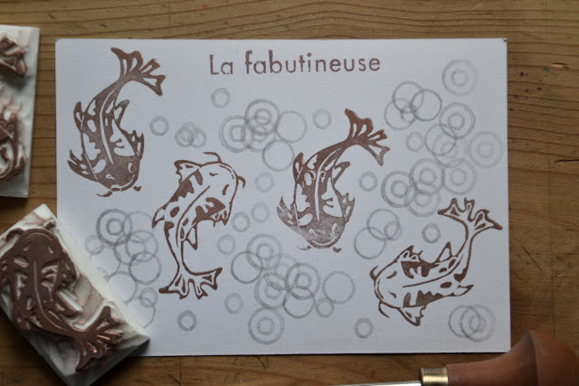 Petits poissons koï gravés