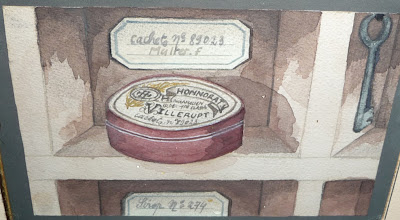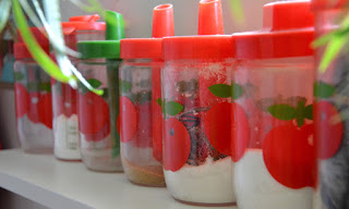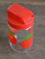 Mais d'abord j'ai eu la joie de voir dans ma boîte aux lettre des cadeaux qui m'ont touchés droit au coeur. Patricia qui fait de si jolis bijoux en laine cardée m'a envoyé un pot henkel qu'elle a récupéré, sachant que j'appréciais ces pots. Je l'ai trouvé dans ma boîte aux lettres et il a rejoint ceux sur l'étagère de la cuisine.