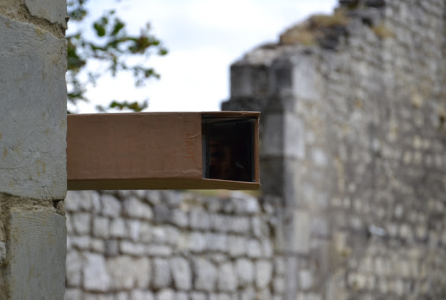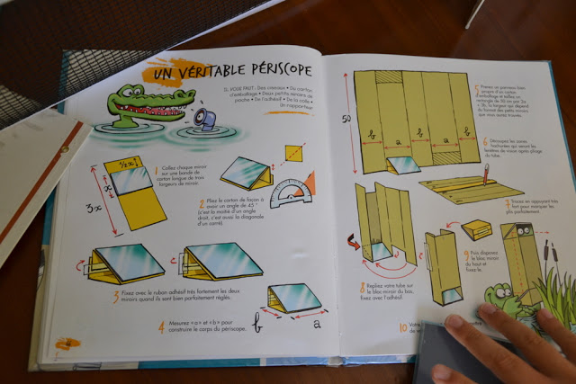 Grand bourdon a voulu faire un périscope en vacances. J'avais acheté le matériel pour le faire et au final c'est moi qui ai fini par le terminer, en fait ça semblait assez simple mais pour un enfant de 9-10 ans, c'était un peu laborieux. Il fallait positionner les miroirs de sorte qu'en regardant dans celui du bas, on voit exactement dehors. Et pouvoir coller les morceaux de carton ensemble de sorte que tout tienne. J'ai fini par mettre du kraft gommé autour pour solidifier l'ensemble.