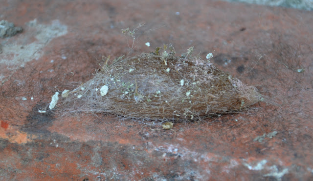Effectivement, le lendemain la chenille s'entourait d'un cocon et quelques jours plus tard le cocon était plus foncé, semblait plus solide.