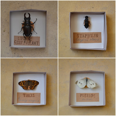 On ne s'ennuie jamais quand on est à la campagne. Il suffit d'avoir un bâton de bois, et des idées. Nous avons été chercher des insectes pour les trucider mettre en valeur à la façon des entomologistes. Petites boîtes origami pour des jolies insectes en vitrine. Comment faire apprendre les noms des insectes aux enfants et les faire regarder avec attention la nature.