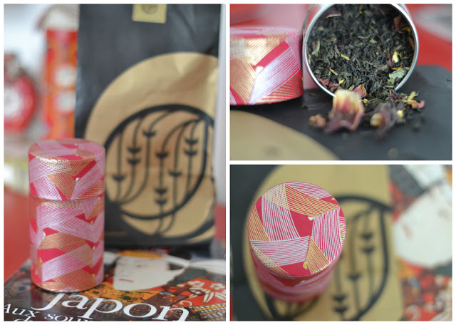 Et puis toujours de Françoise, une boîte de thé !! Une boîte magnifique, élégante, et le thé aux arômes fabuleux, pétales de rose, menthe, jasmin. Mmm.