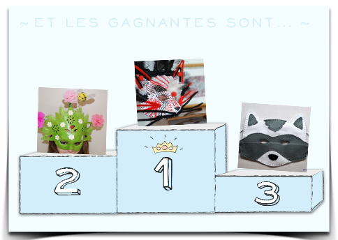 félicitations!!tu as gagné parce qu'il était top ton masque ;-)la chance sera peut-être de mon côté pour ton tirage...