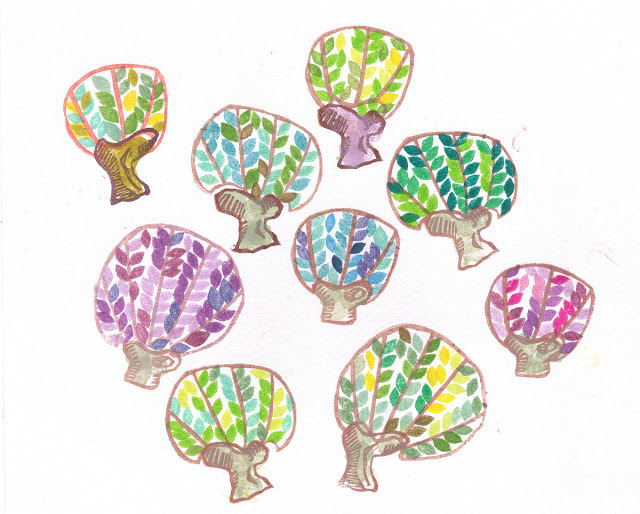 Tout est magnifique. Quoi utiliser pour ce battle ? C'était un choix presque impossible. Alors j'ai fait plusieurs arbres "à la façon de", comme sur l'image de "Un nénuphar m'a raconté".