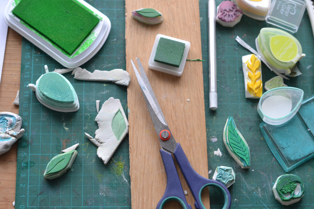 depuis un moment j'ai envie d'utiliser des tampons sur ce matériau. J'ai fait des petits essais que je vous montre.