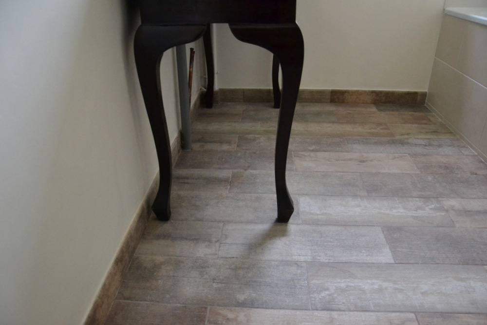 Moi aussi j'ai du carrelage imitation bois dans ma salle de bain et dans mes WC. C'est vraiment chouette, sauf que moi je l'ai payé une petite fortune, c'était au tout début de la sortie de ce type de carrelage.