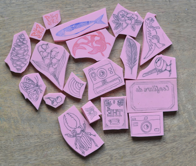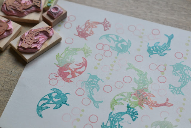 Les petits tampons du week-end gravés en plus de quelques commandes. Suite à quelques suggestions faites sur facebook, j'ai gravé des carpes koï, mais pas seulement. Petit poisson et sardines sont dans la boutique.