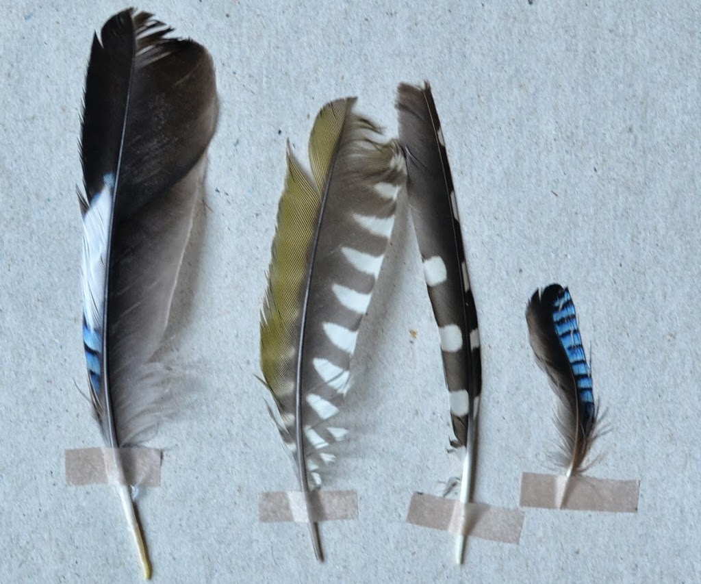 Oh les plumes de geai … elles sont magnifiques, et j’ai eu la chance d’en trouver une (oui, une seule) voici quelques temps !!! Bien sûr, tout comme toi, je ramasse toutes les plumes qui me parlent et les range dans une boîte en attendant leur utilisation.
