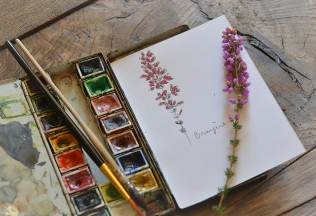 Les jolies bruyères m'ont servi d'inspiration pour un tampon de la série impression botanique. En deux parties, fleurs et branche pour décorer des futurs carnets ou tissus.