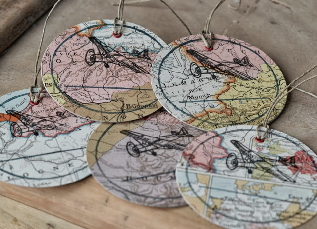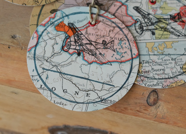 Vous avez vu les carnets en début de semaine, cette fois-ci, j'ai réalisé des étiquettes pour les cadeaux, vous savez comme j'aime utiliser des anciens papiers trouvés en brocante, là j'ai utilisé des papiers épais de cartes de livres anciens (atlas et livres de géographie).