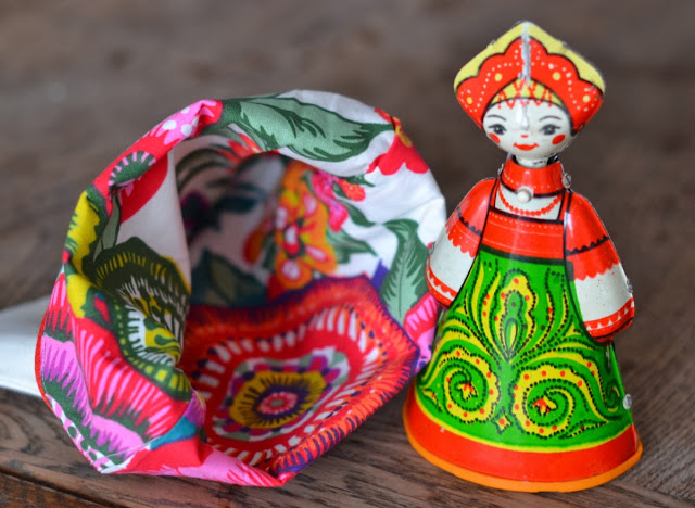 J'aime le folklore russe, les motifs, les couleurs vives. On connait beaucoup les matriochkas, mais les poupées avec une coiffe kokoshnik sont moins rencontrées et pourtant typiques des tenues de fêtes.
