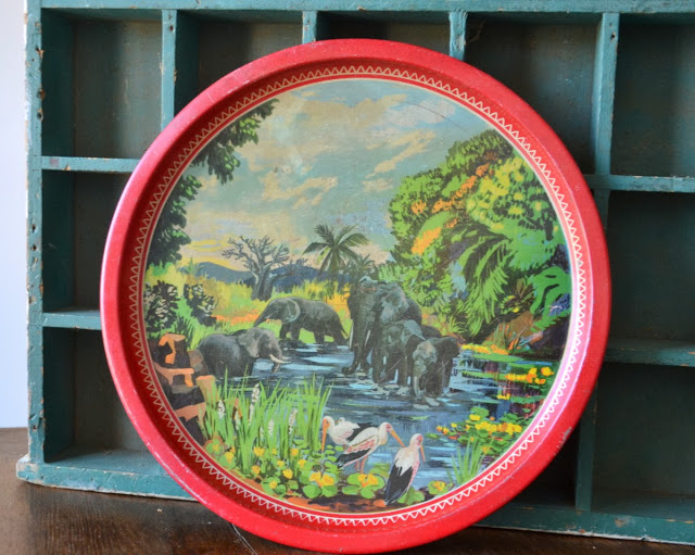 Plateau en métal en super état, il va peut-être aller au mur, tellement je le trouve joli.