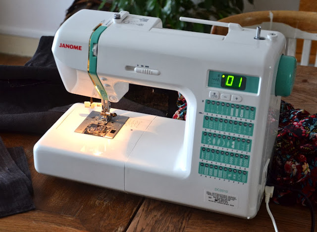 A la fin de l'année, ma machine à coudre est tombée en rade, c'était l'occasion de me faire plaisir avec une nouvelle machine. Et hop ! je l'ai reçue la semaine dernière. C'est une Janôme DC2010 Elle a été choisie sur les conseils de Isabelle (Lathelize), j'ai pris le même modèle qu'elle utilise et dont elle semble très satisfaite. Vu son rythme de couture, je ne doute pas de son conseil avisé. La contrainte pour moi était une bonne gestion des épaisseurs, avec cette réalisation j'ai pu tester et c'est parfait. Bon je n'ai testé que des points basiques pour le moment, mais ça ne semble franchement pas bien compliqué. je me faisais toute une montagne de ce type de machine, finalement quel confort !!