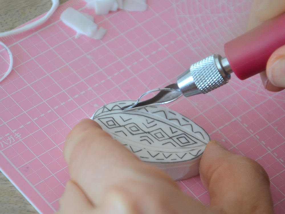 J’ai utilisé une gouge fine speedball que l’on trouve sur internet.
