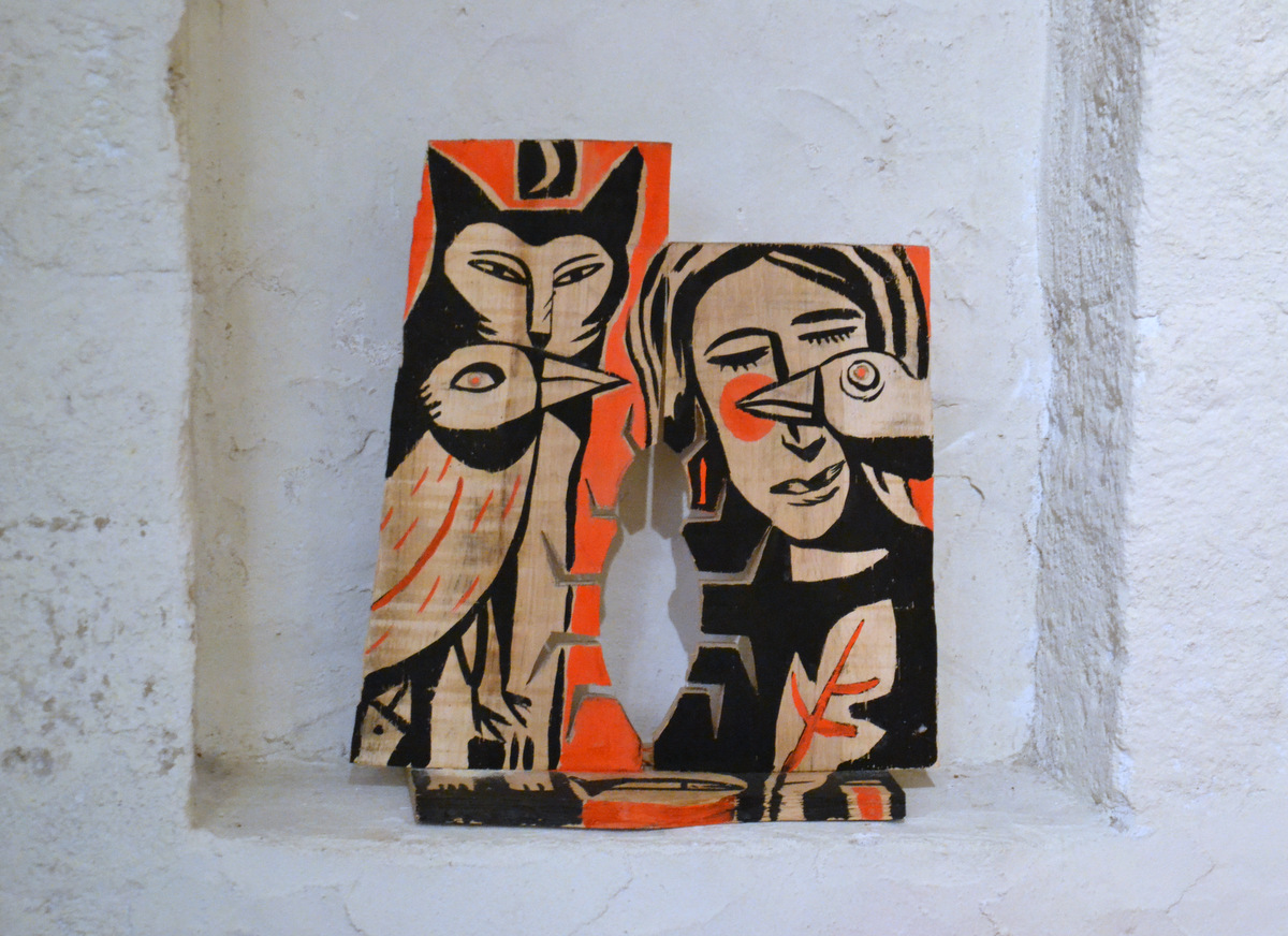 Vous pouvez, si vous êtes dans la région de Beaugency, aller voir cette superbe exposition qui est en place jusqu'au 13 avril. Il n'y a pas que des peintures, il y a aussi des sérigraphies et des figures en volume qu'on peut regarder de plusieurs côté, on aura l'impression à chaque regard de découvrir des choses différentes. Du bois peint caméléon et des sérigraphies qui chantent des airs latino-américains.